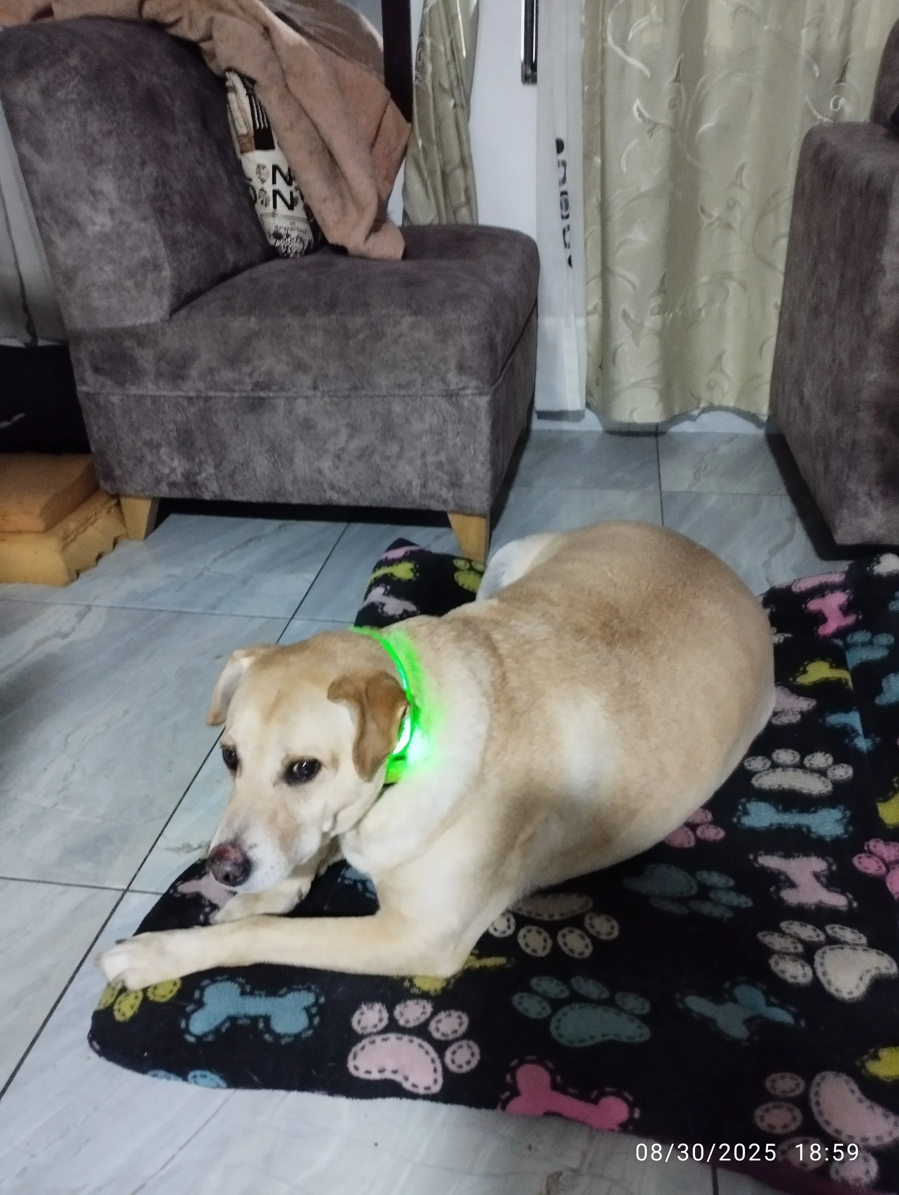 It arrived quickly in Colombia, it's size L and the dog is fat.